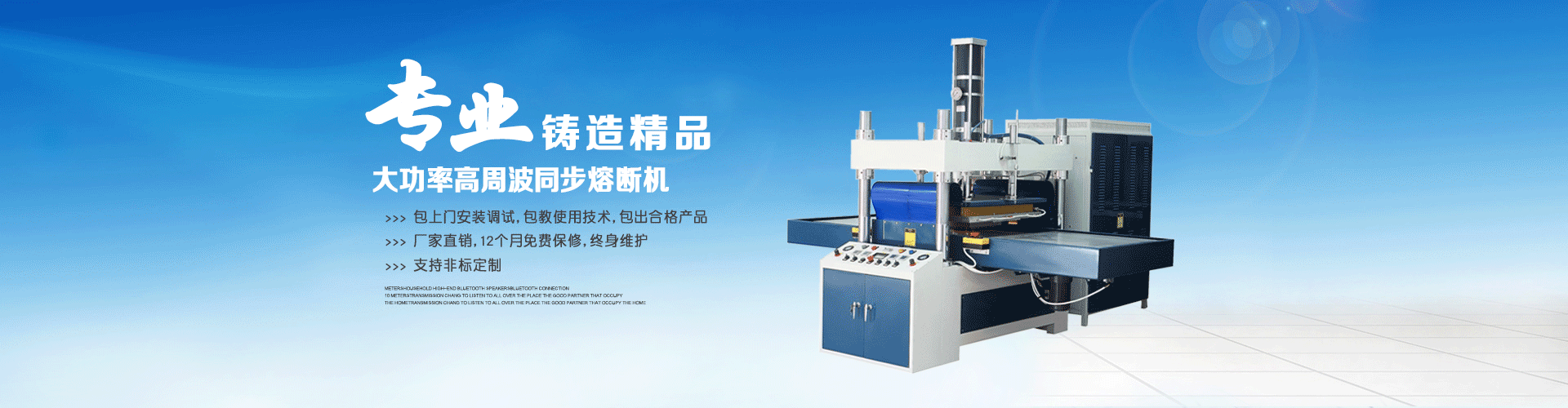我司生產的高周波設備包括有:高周波同步熔斷機、手機皮套高周波機、自動轉盤高.....[查看更多..] -